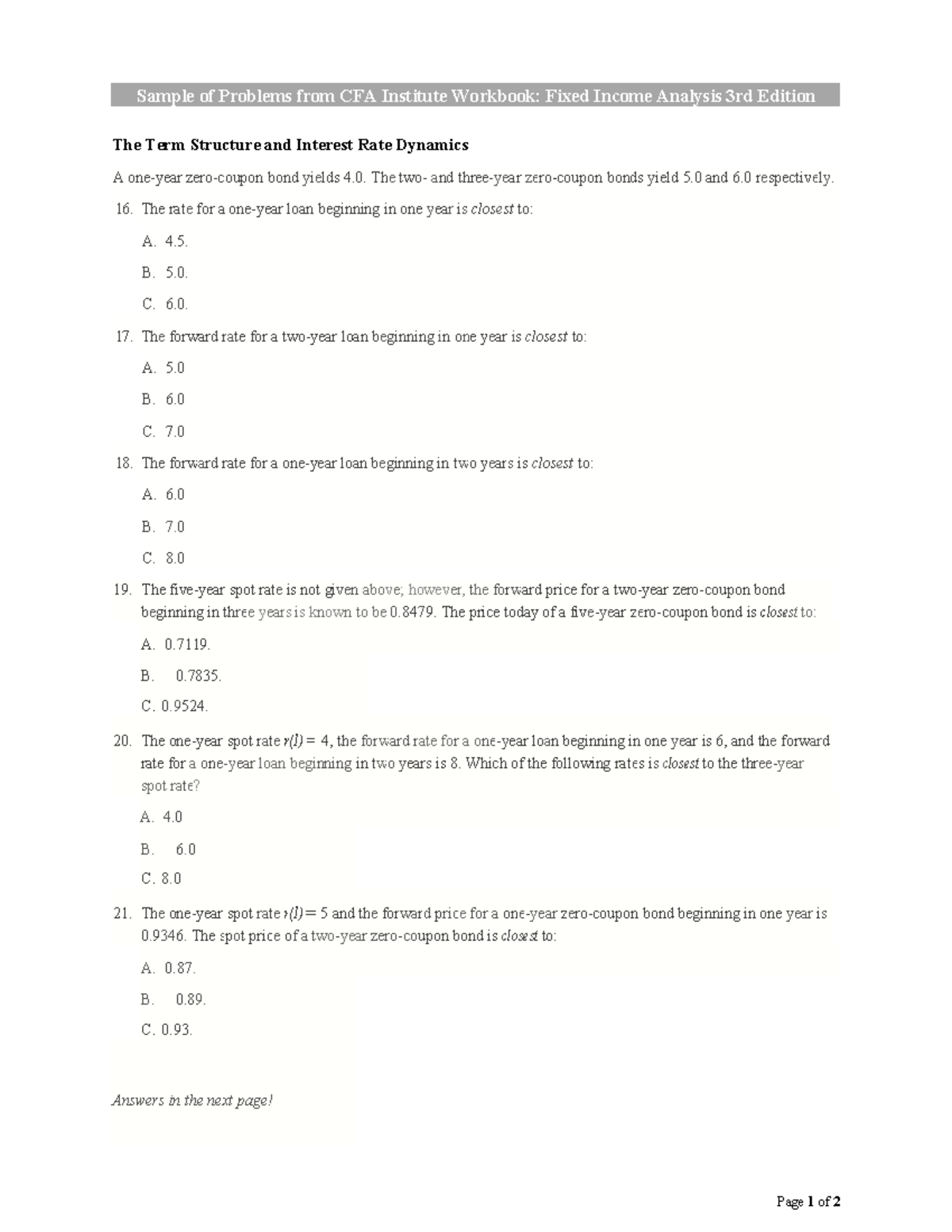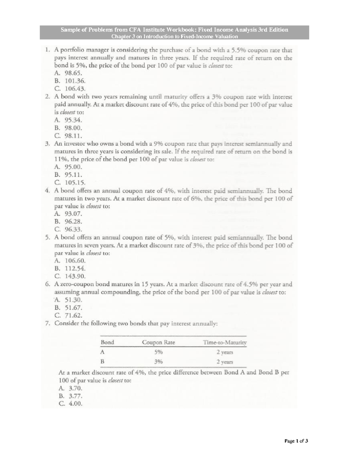 CFA Level 1 Practice Problems: Fixed Income Analysis Chapter 3 - FIN ...