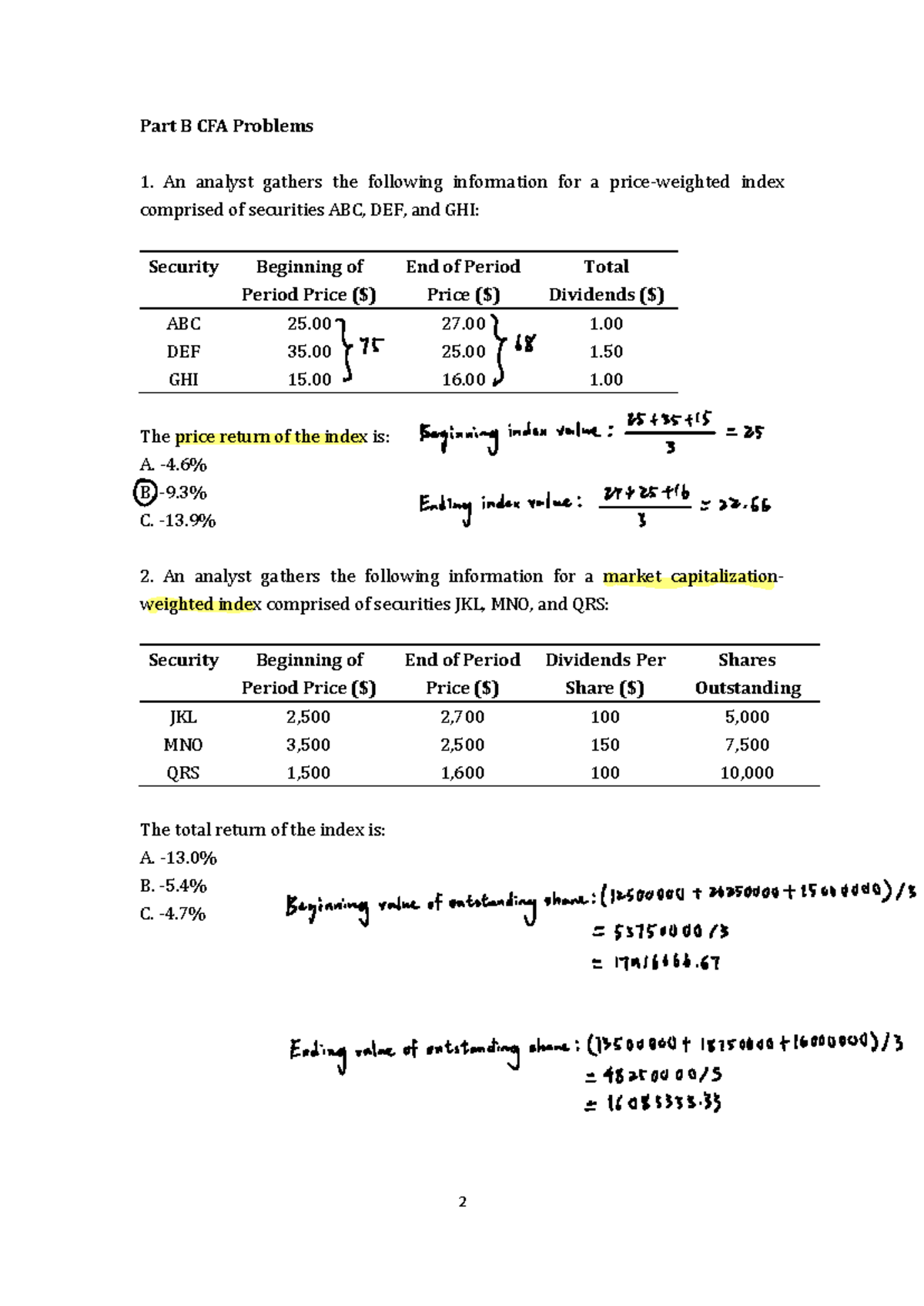 FIN3003 Part B CFA Problems: Index Returns Analysis - Studocu