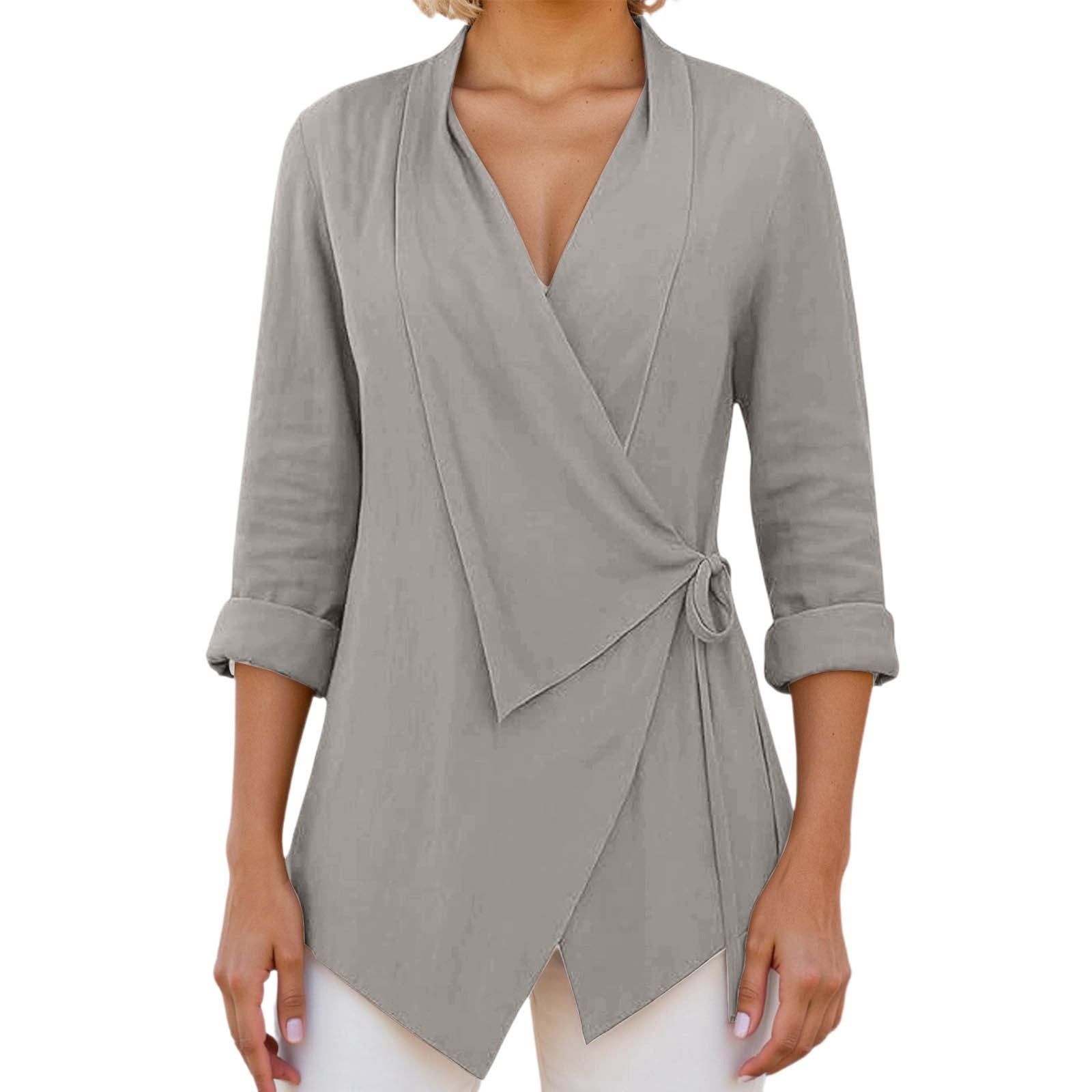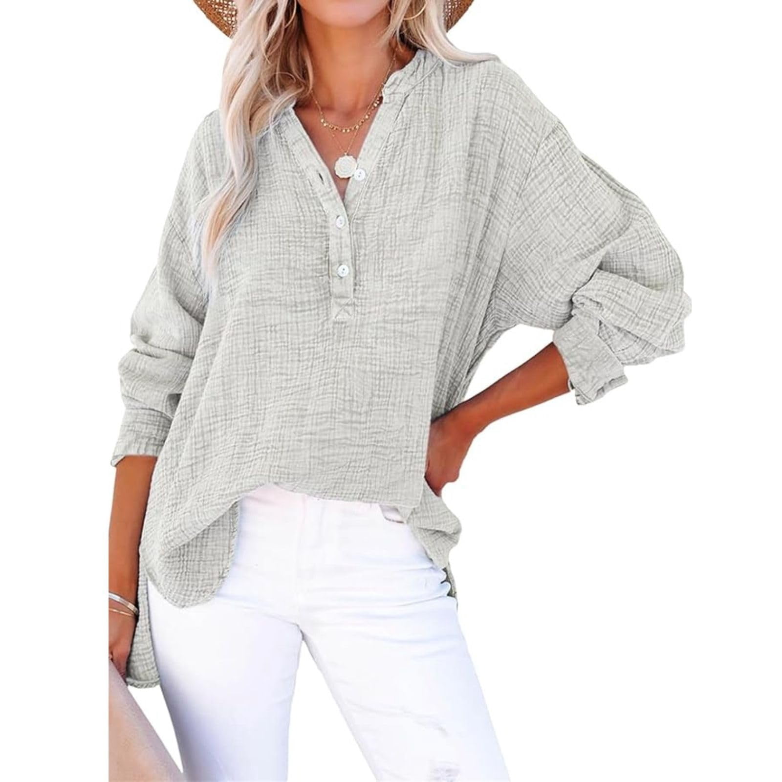 Breathable Blouses for Women, Long Sleeve V Neck Button Down Linen ...