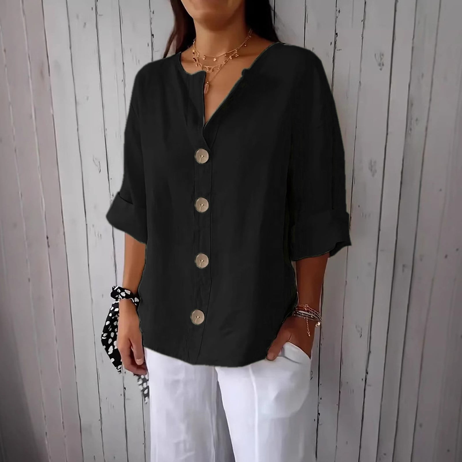 DORKASM Shirts For Women Casual Button Lightweight V Neck Long Sleeve ...