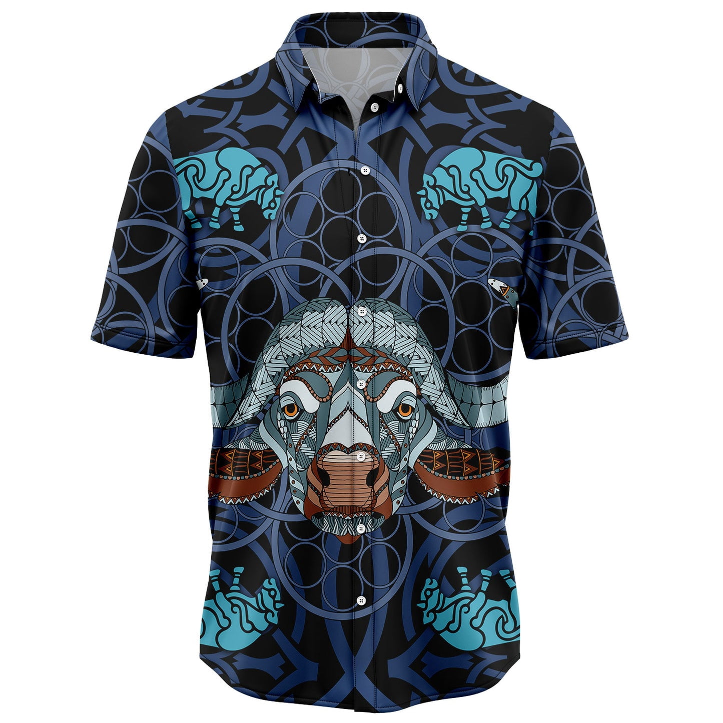 DIQADILA Bison Blue Mandala Aloha Hawaiian Short Sleeve Button-Up Shirt ...