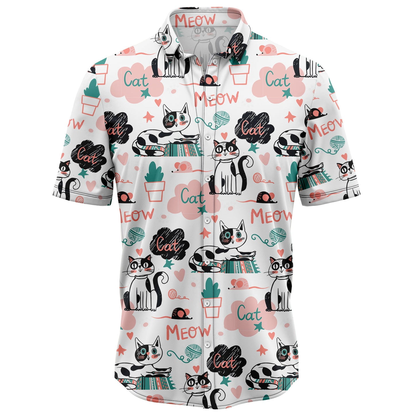 DIQADILA Cute Cat Aloha Hawaiian Short Sleeve Button-Up Shirt - Walmart.com
