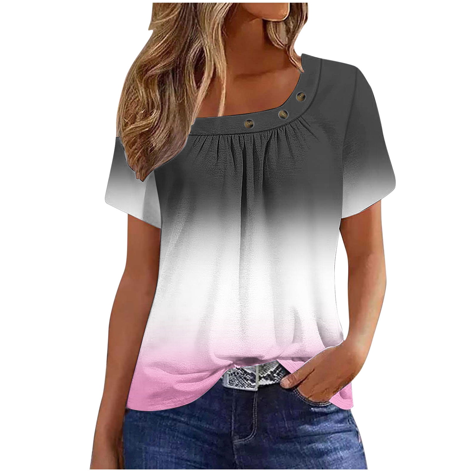 Short Sleeve Women Blouses Button Down Shirts Business Casual Dressy ...