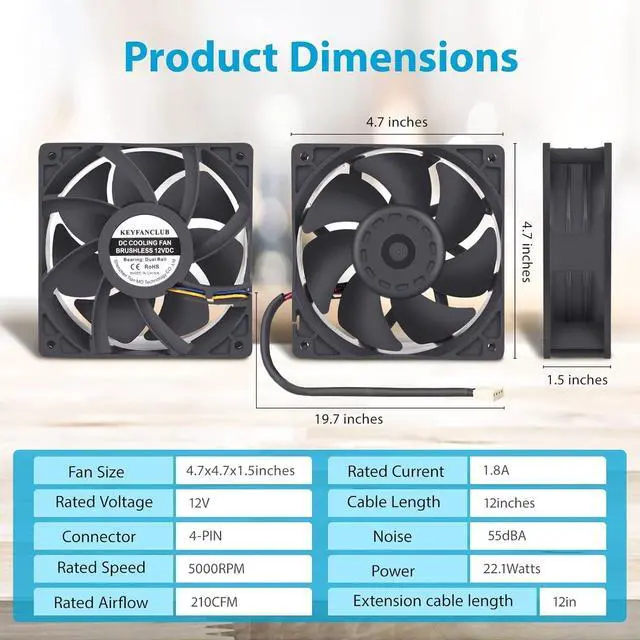 Amazon.com: KEYFANCLUB High CFM Computer Fan 12V 4-PIN PWM Register ...