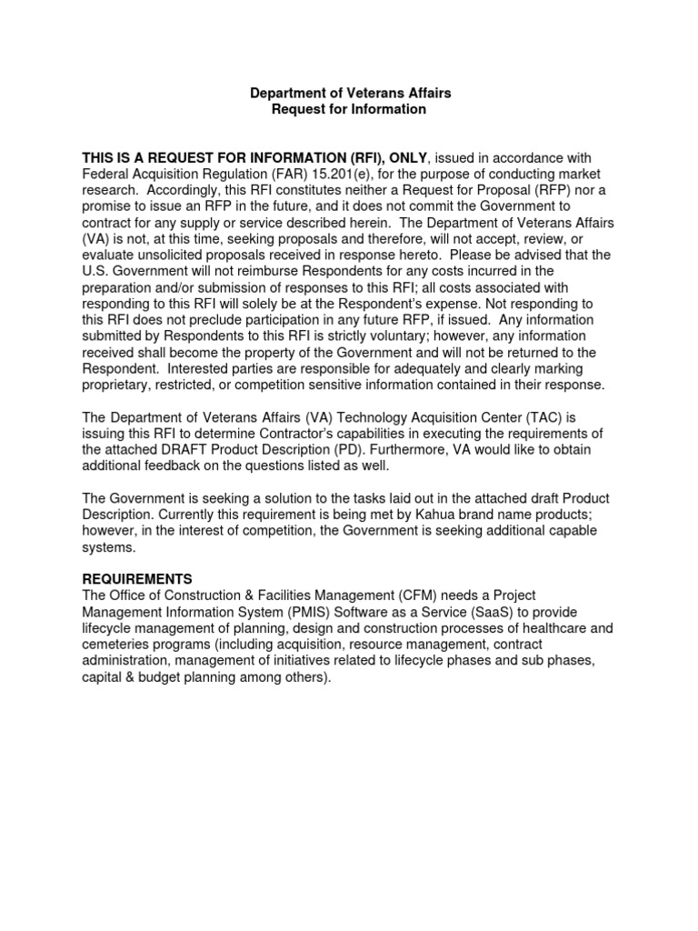 Rfi - Pmis CFM | PDF | Software As A Service | Request For Proposal