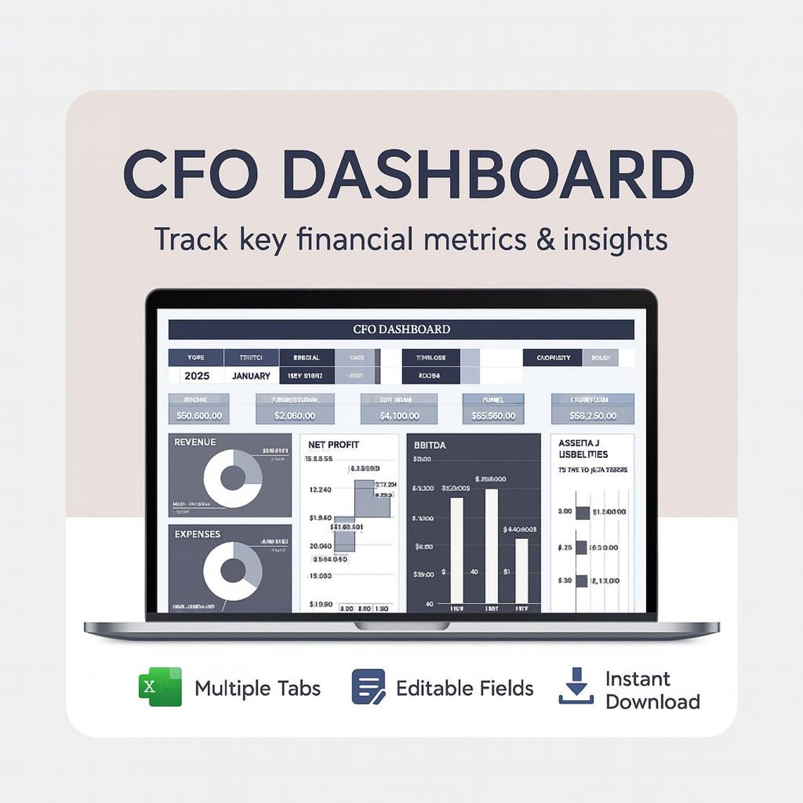 CFO Dashboard Template | Excel and Google Sheet | Financial Tracking ...