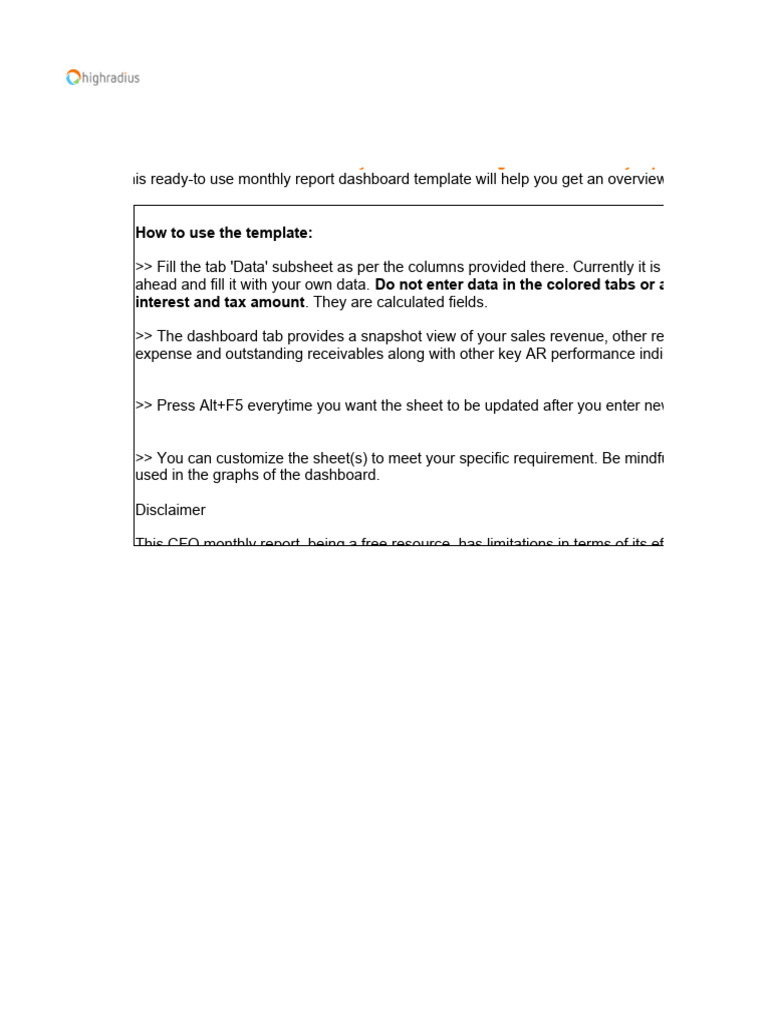 Cfo Monthly Report Template