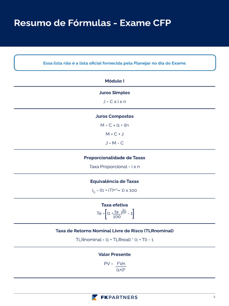 Certificado CFP - Fórmulas PDF | PDF | Pagamentos | Finanças Governamentais