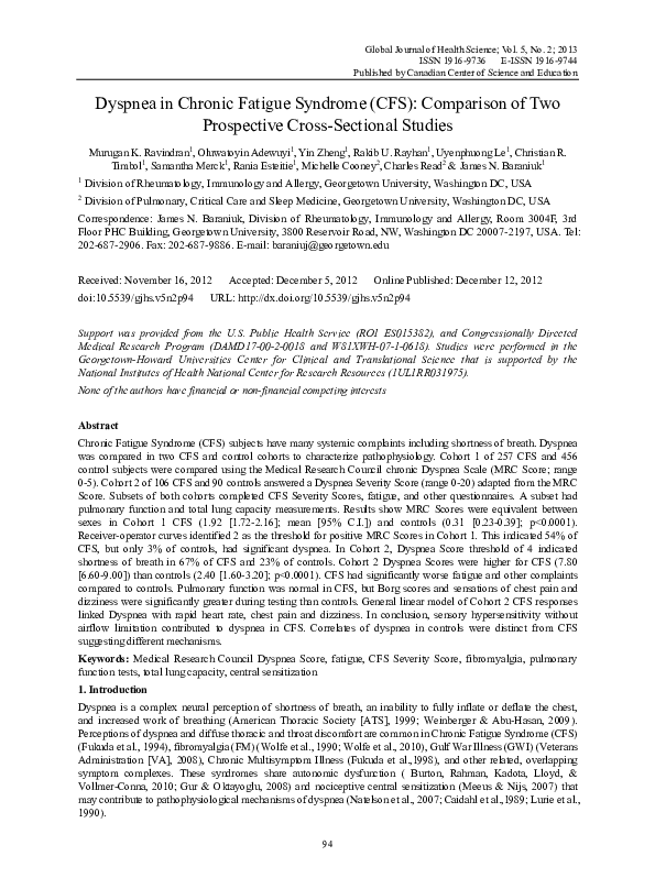 (PDF) Dyspnea in Chronic Fatigue Syndrome (CFS): Comparison of Two ...