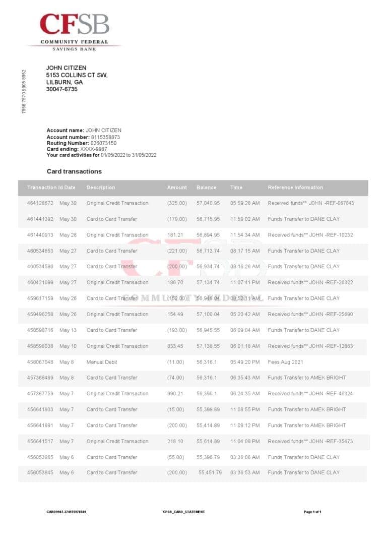 CFSB Bank Statement US | Download Free PDF | Transaction Account ...