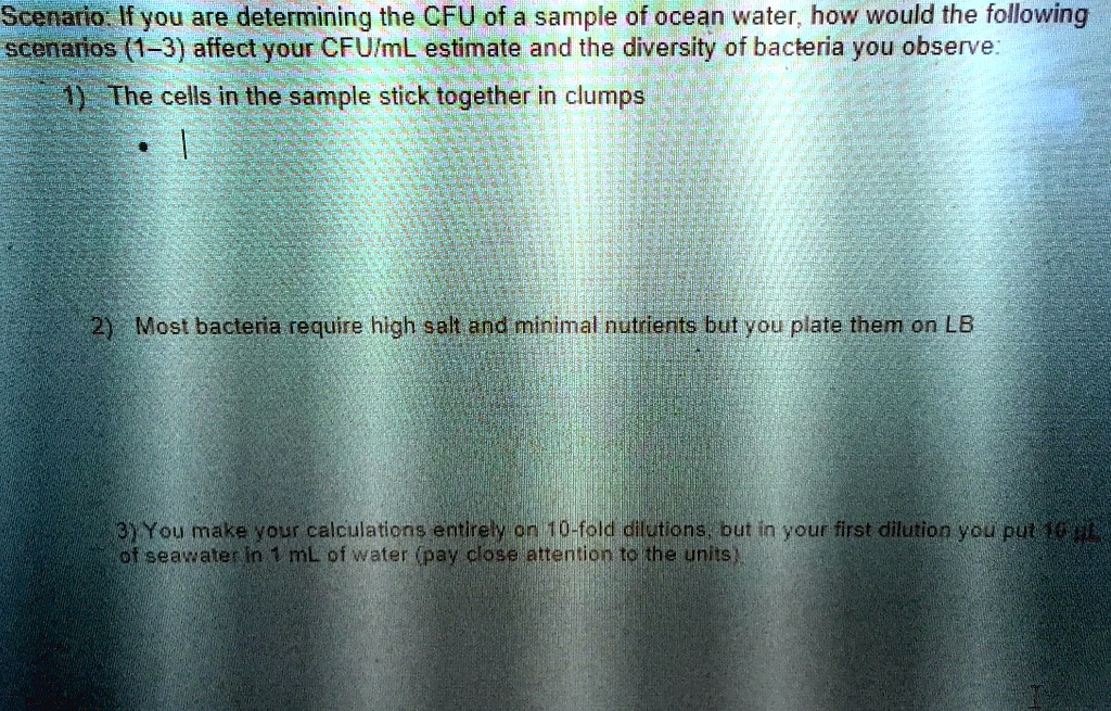 SOLVED: If you are determining the CFU of a sample of ocean water, how ...