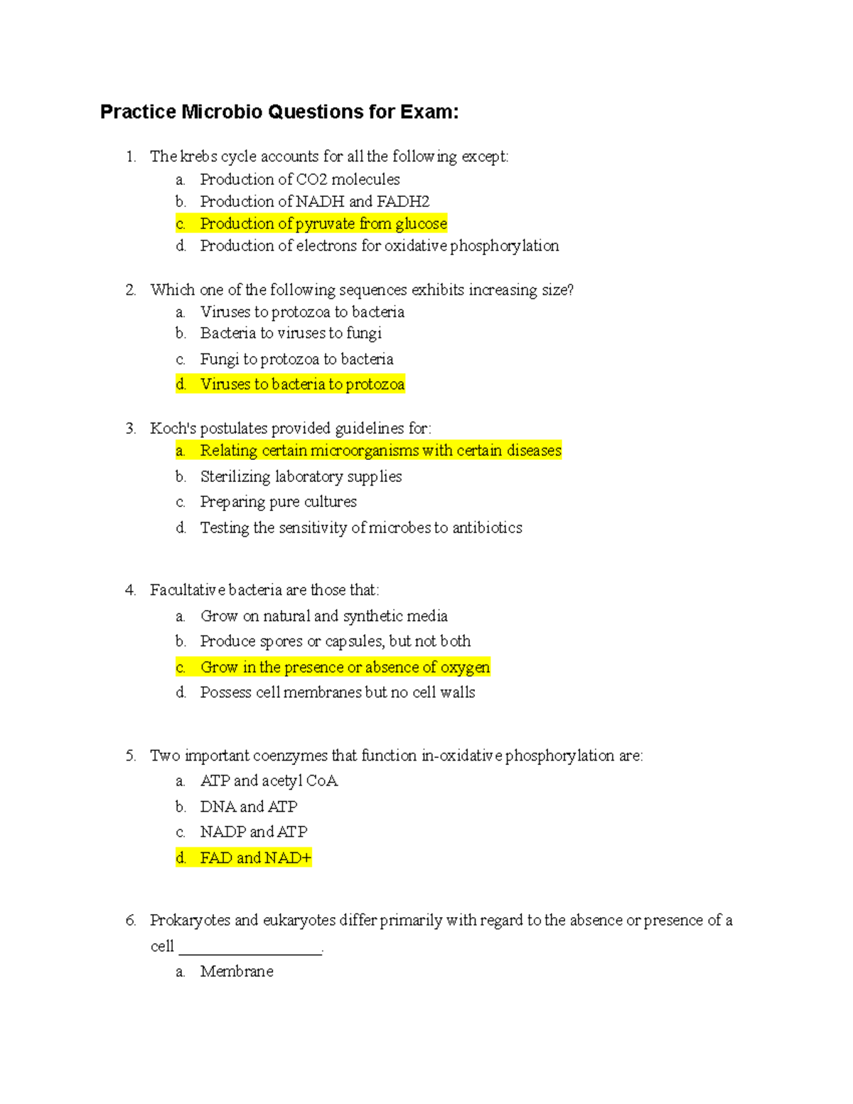 Practice Microbio Questions part 2 - Practice Microbio Questions for ...