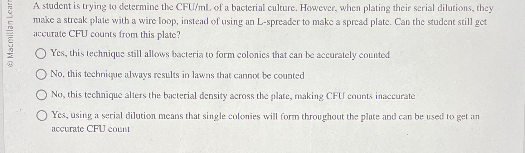 Solved Scenario: If you are determining the CFU of a sample | Chegg.com