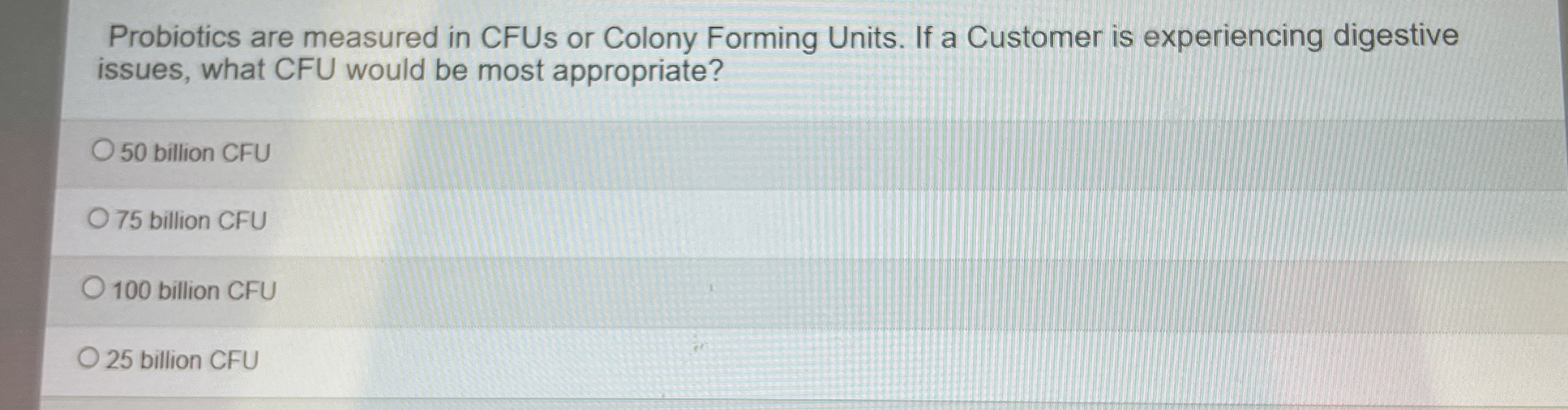 Solved Probiotics are measured in CFUs or Colony Forming | Chegg.com
