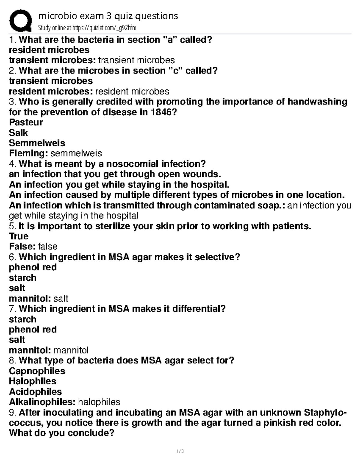 Microbio Exam 3 Quiz Questions and Answers - Studocu