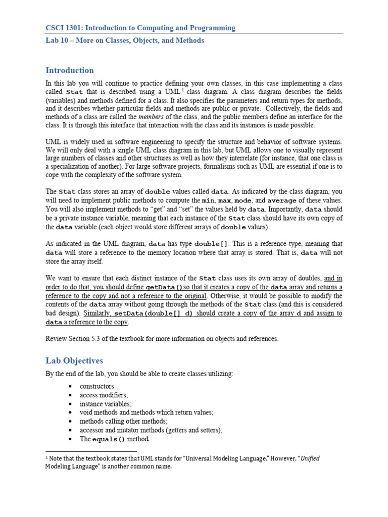 Lab 10 | PDF | Class (Computer Programming) | Method (Computer Programming)