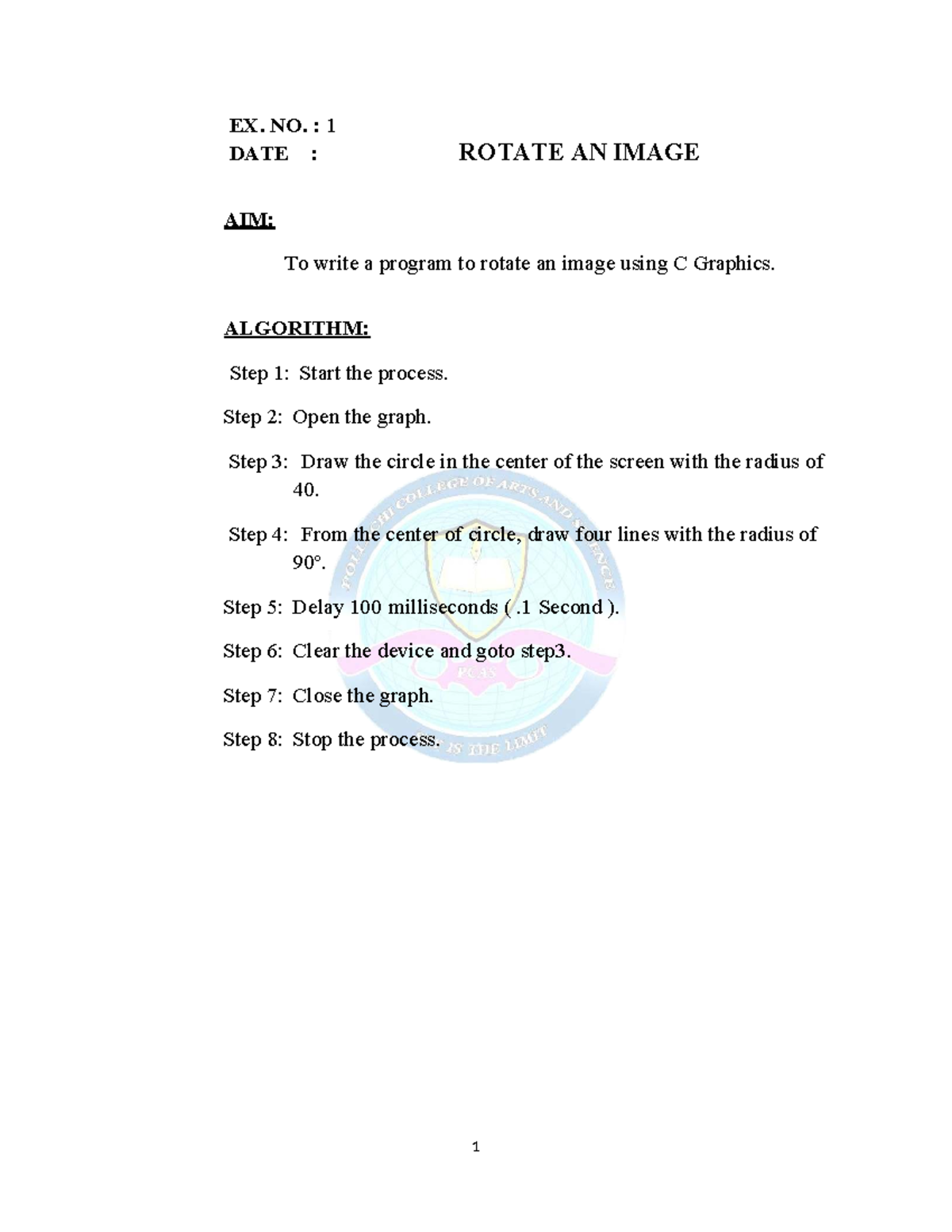 CG Lab Programs - Computer graphics practical record - Date : Expt ...