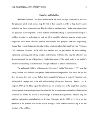 Cognitively Guided Instruction, or CGI, refers to focusing on the ...