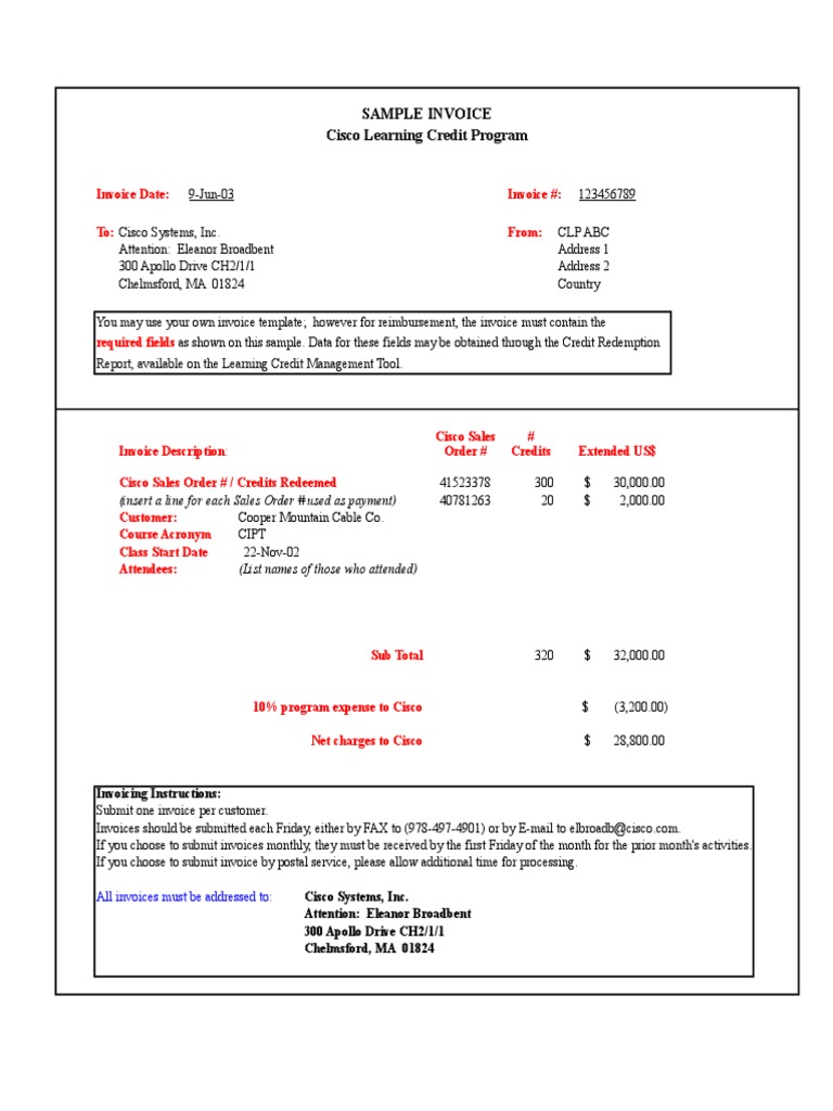 Sample Invoice Cisco Learning Credit Program: (Insert A Line For Each ...