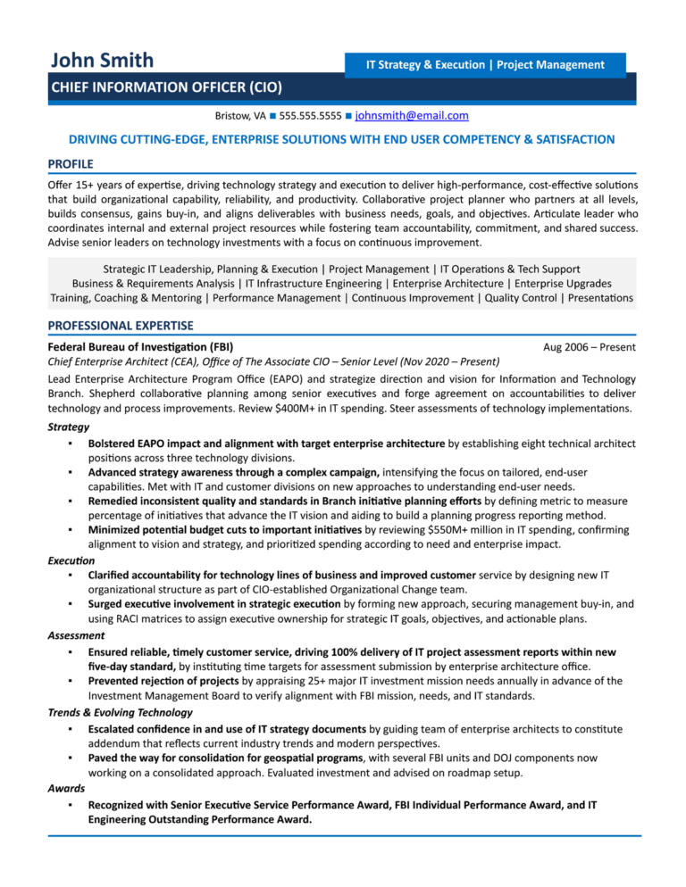 Sample Résumé: Chief Information Officer - Certified Resume Writer