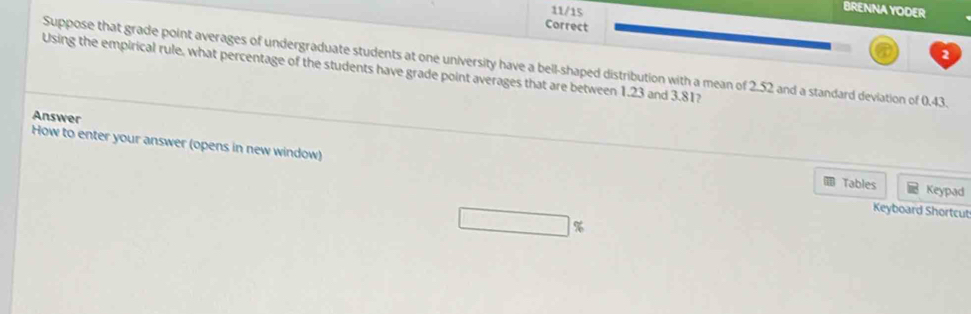 Solved: 11/15 BRENNA YODER Correct 2 Suppose that grade point averages ...