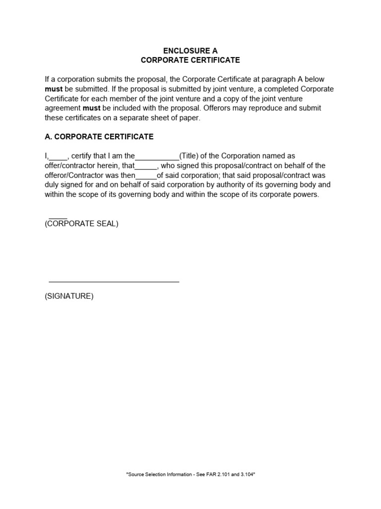 Enclosure A - Corporate Certificate | PDF