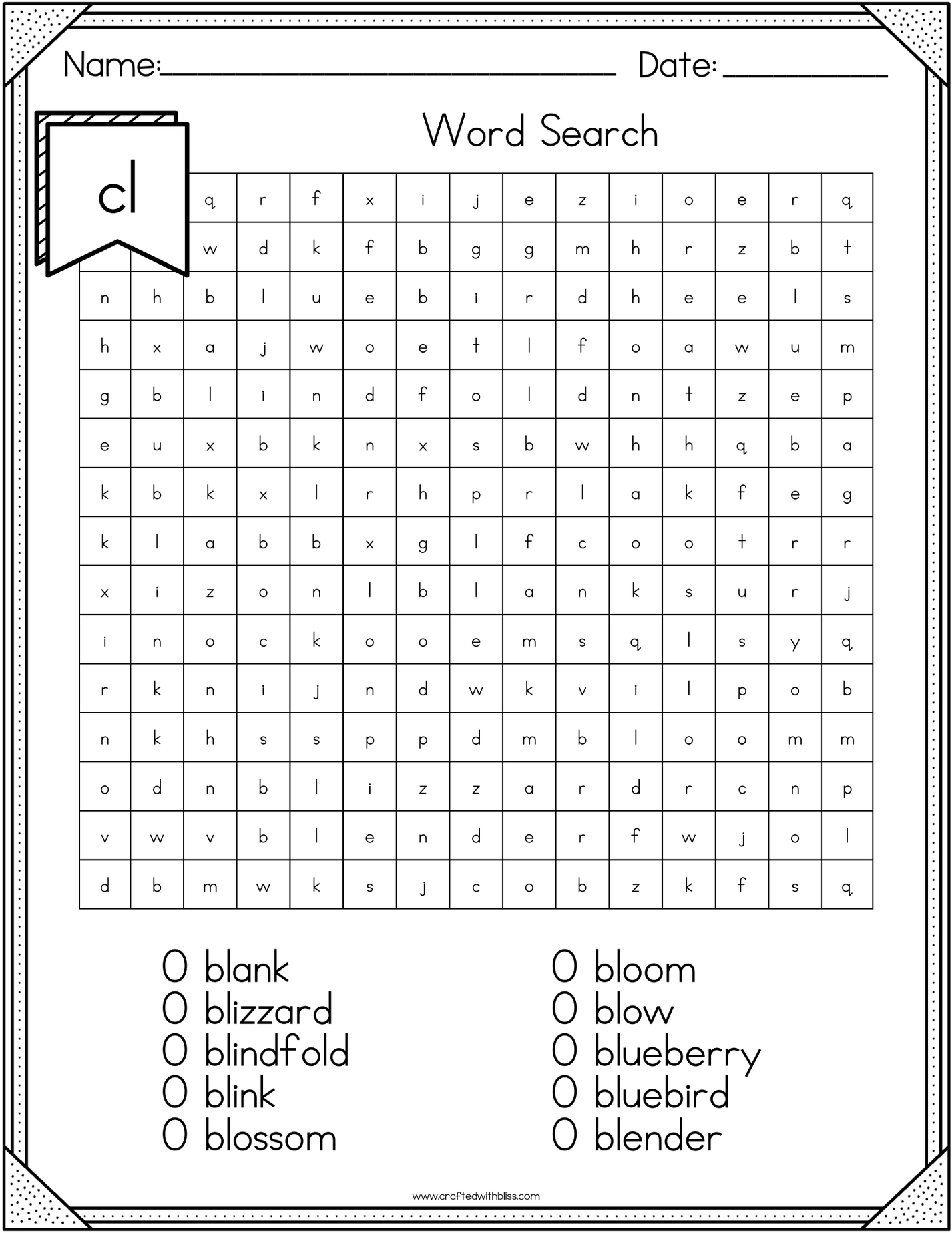 CL Blend Worksheets - CL Blend Homework for 1st Grade Spelling List ...