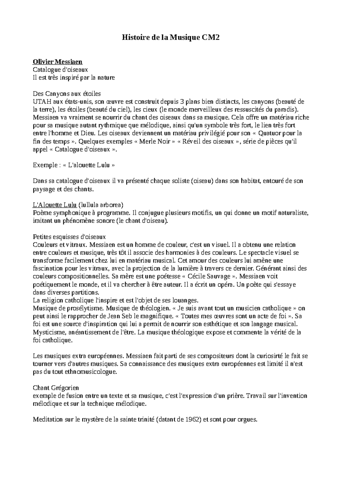 CM2 - Notes de cours 2 - Histoire de la Musique CM2 Olivier Messiaen ...