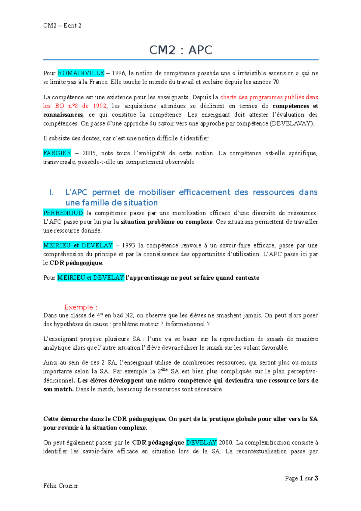 CM2-APC-E2 - Notes de cours 1 - CM2 – Ecrit 2 CM2 : APC Pour ...