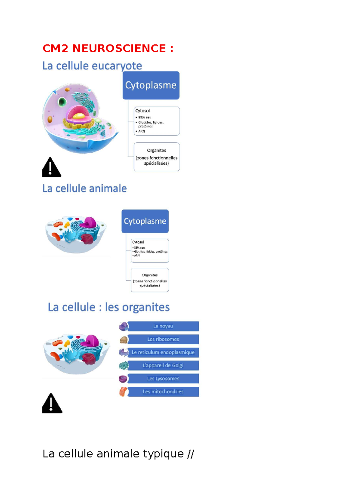CM2 NEUROSCIENCE : Notes de cours sur la cellule animale - Studocu