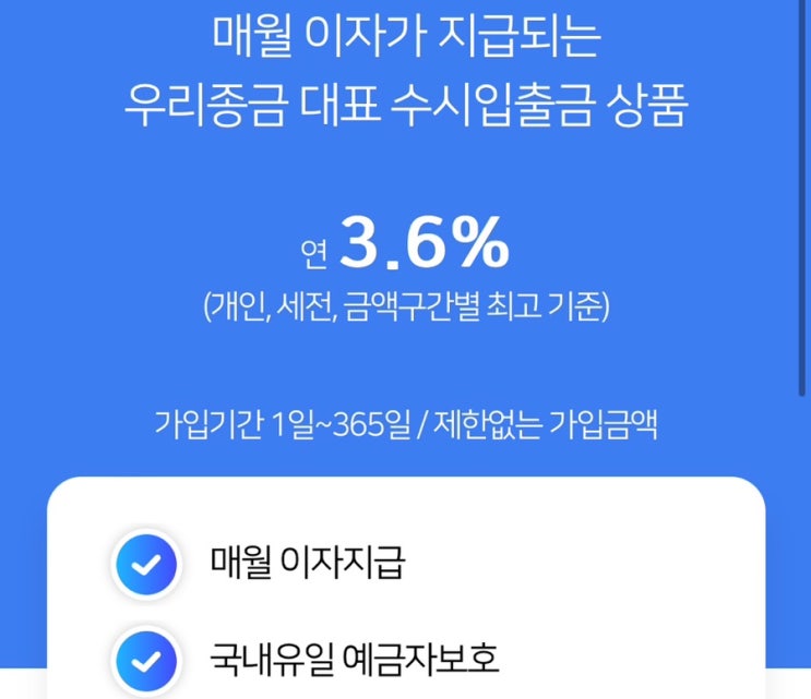 우리종합금융 CMA Note 예금자보호되는 파킹통장 (금리 3.5% 이자 계산해보자) : 네이버 블로그