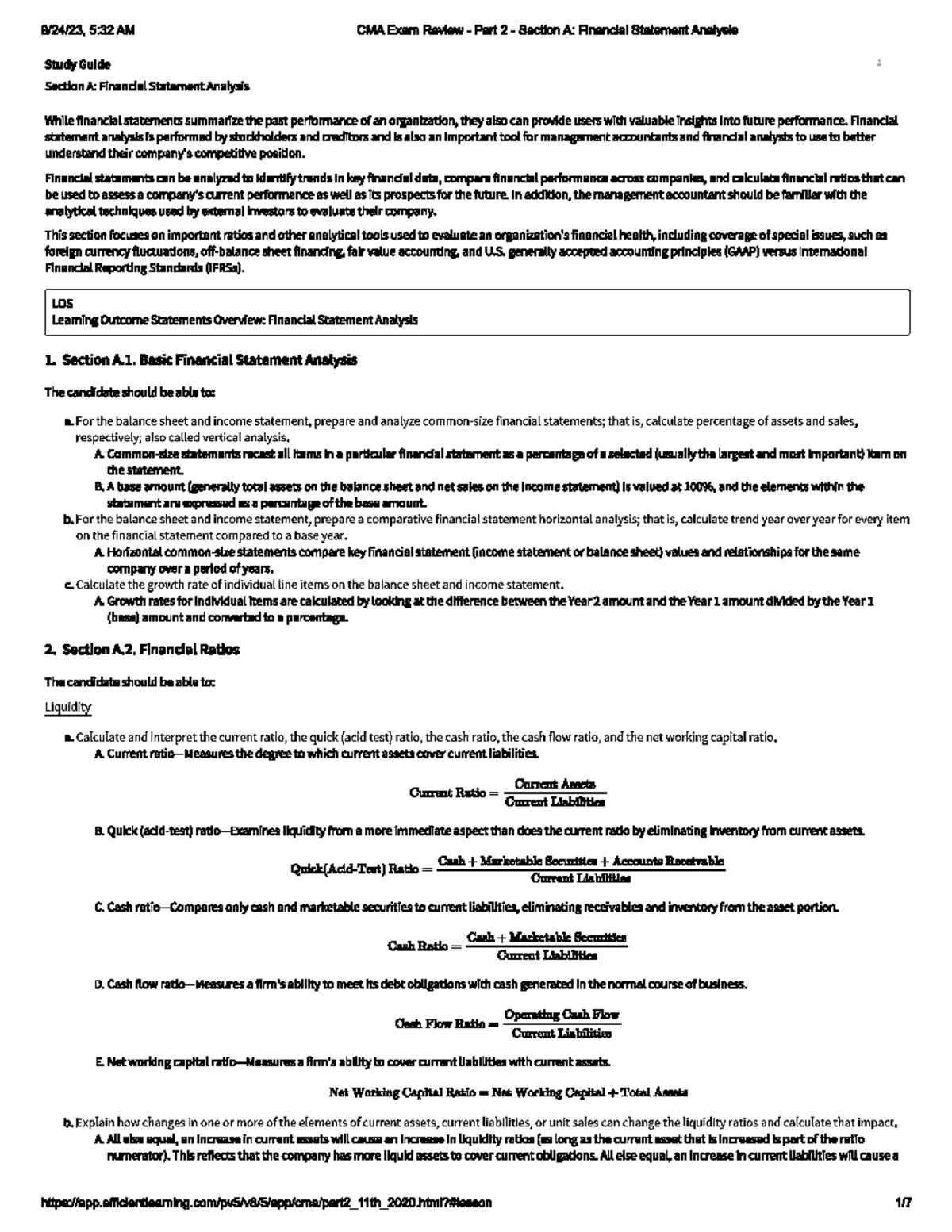 Section-A - Study Guide for CMA Review Part 2 - Section A - 5:32 AM CMA ...