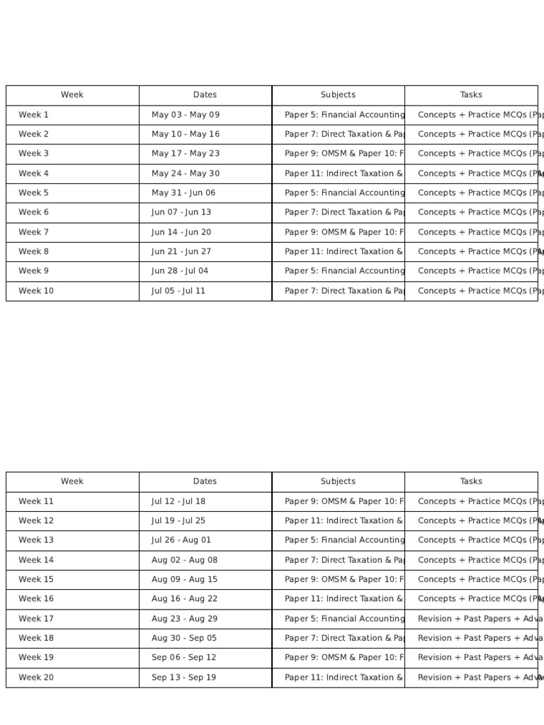 CMA Intermediate Weekly Study Plan May To Dec 2025 | PDF | Taxes ...