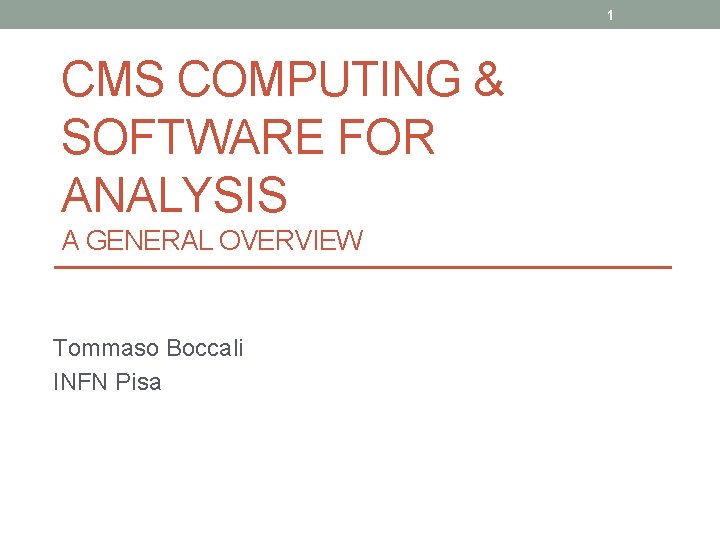 1 CMS COMPUTING SOFTWARE FOR ANALYSIS A GENERAL