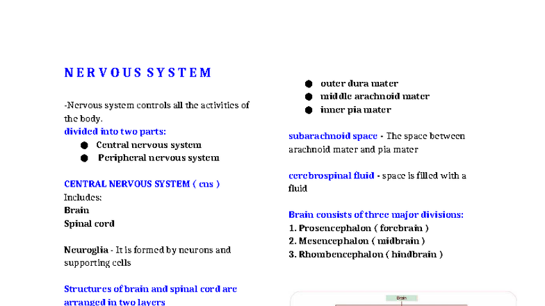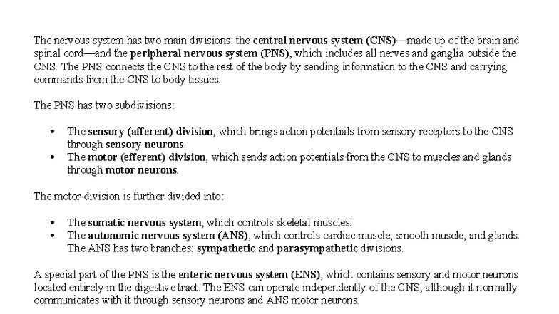 NERVOUS SYSTEM (CNS & PNS) - Detailed Overview and Functions - Studocu