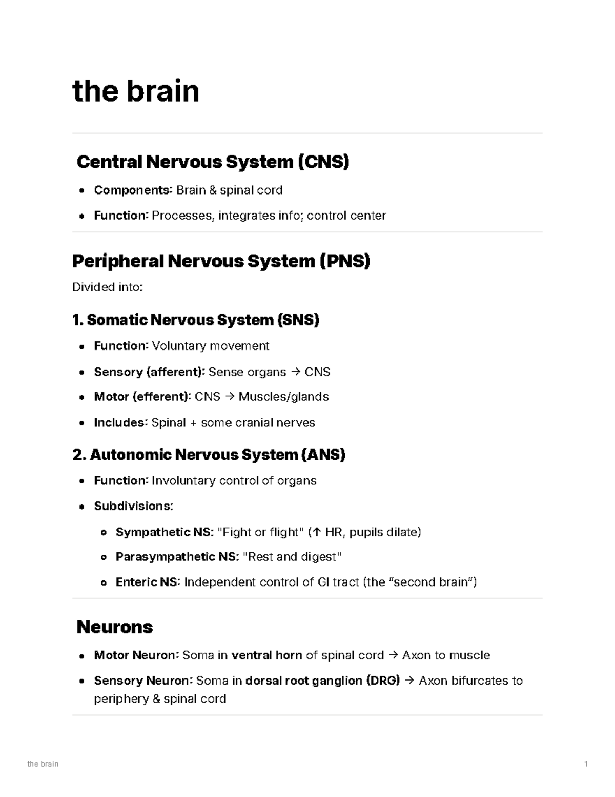 CNS & PNS Overview: Brain Functions & Nervous System Components - Studocu