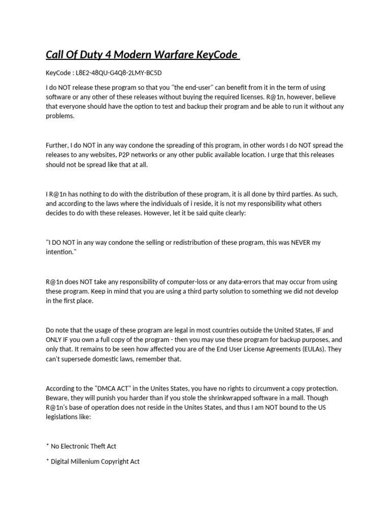 Call of Duty 4 Modern Warfare KeyCode | PDF | Copyright Infringement