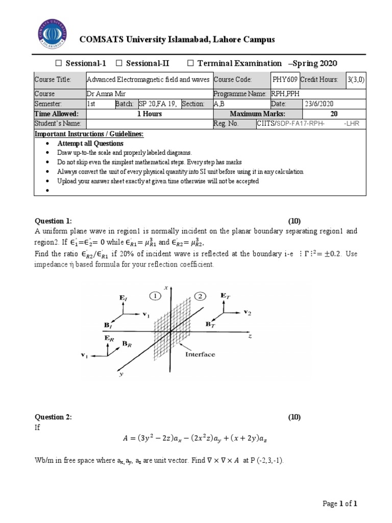 COMSATS University Islamabad, Lahore Campus: Sessional-1 Sessional-II ...