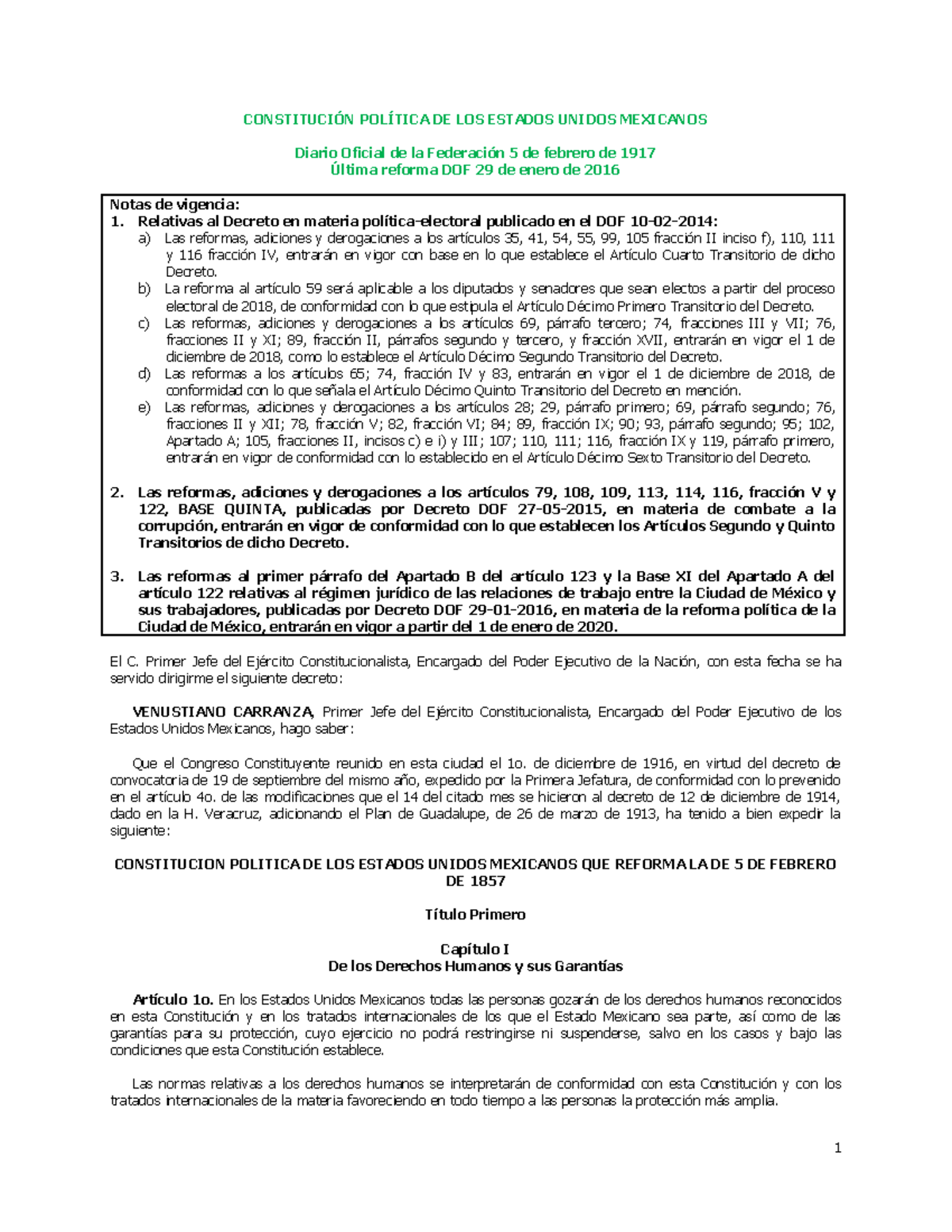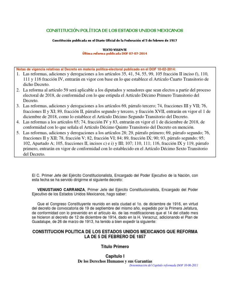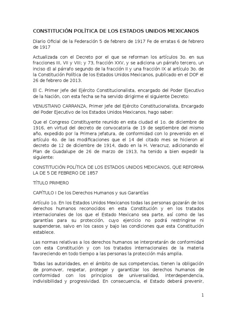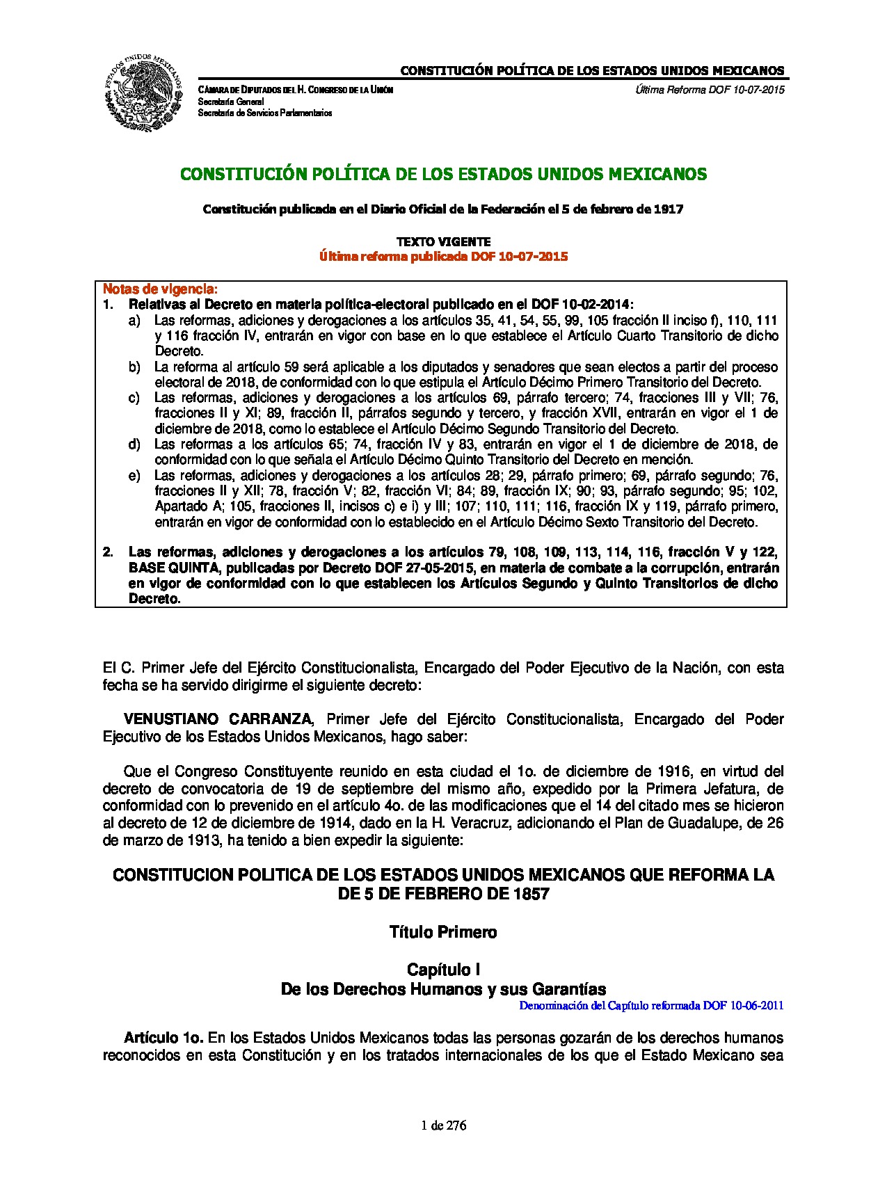 CONSTITUCIÓN POLÍTICA DE LOS ESTADOS UNIDOS MEXICANOS (1) | PDF ...