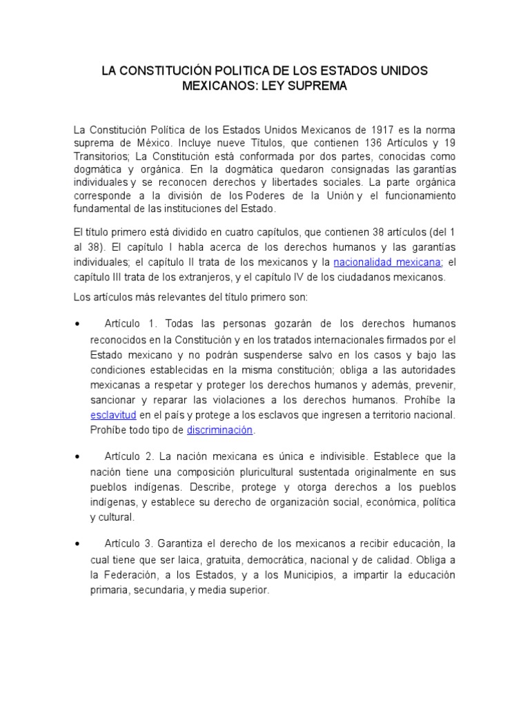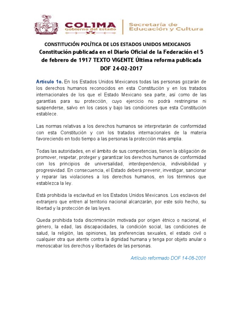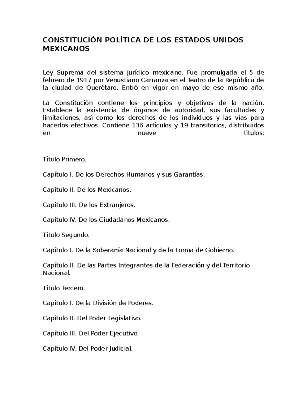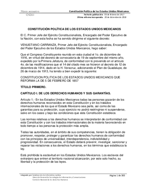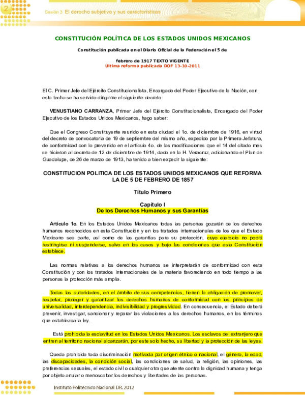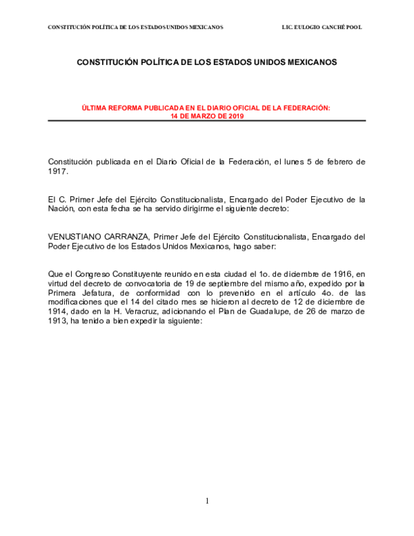 CONSTITUCIÓN POLÍTICA DE LOS ESTADOS UNIDOS MEXICANOS (1) | PDF ...