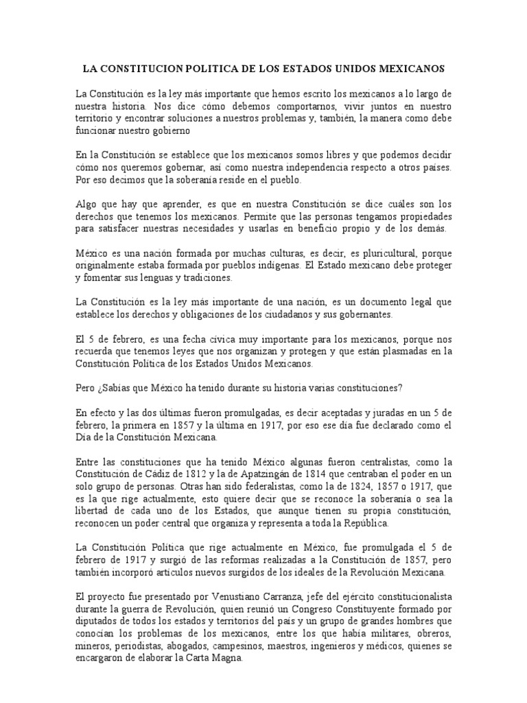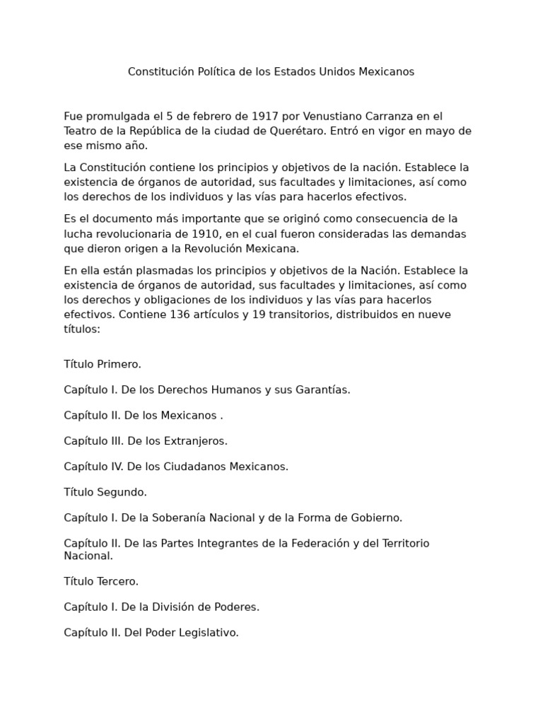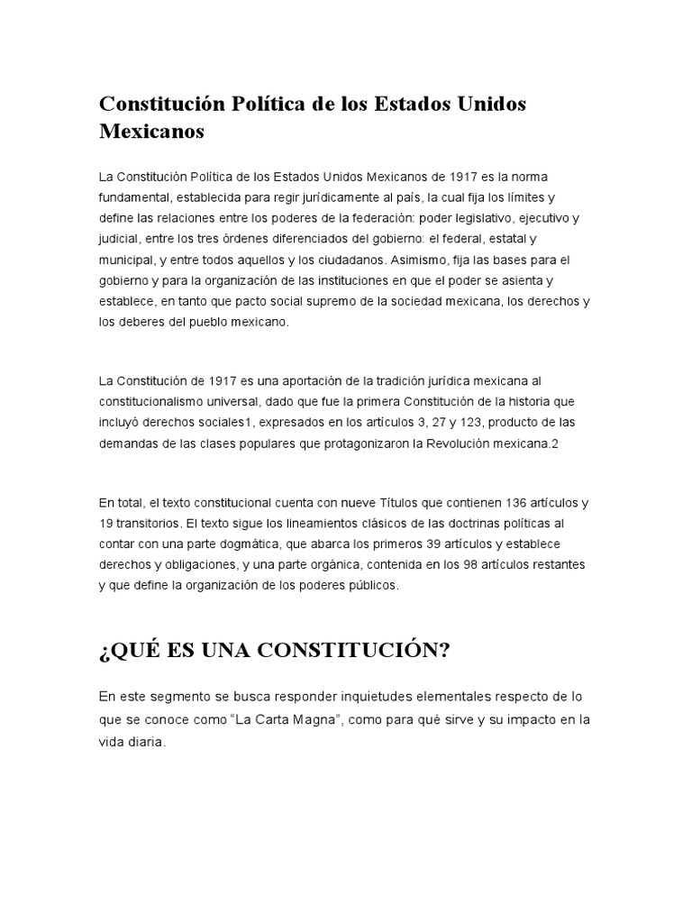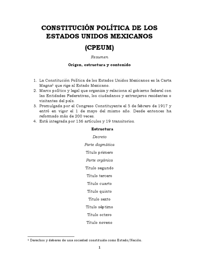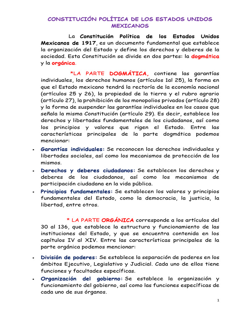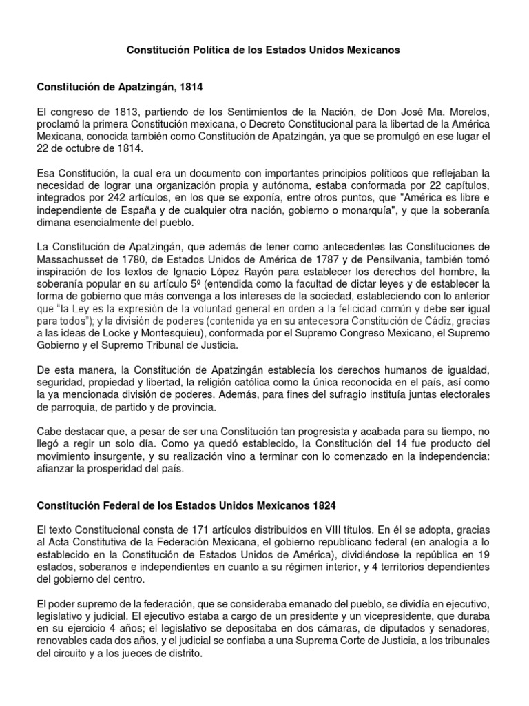 Resumen de la Constitución Mexicana | PDF | Estado (política ...