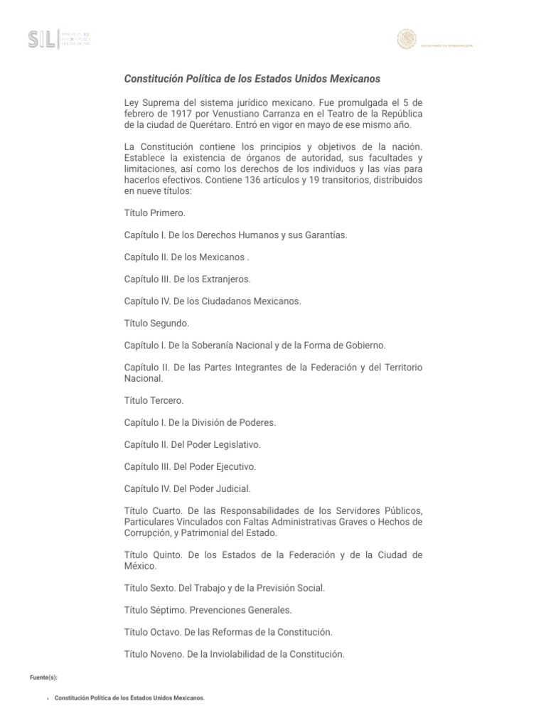 Documento : Constitución Política de los Estados Unidos Mexicanos