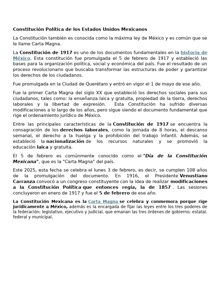 1917: Es promulgada la actual Constitución Política de los Estados ...