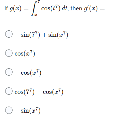 Solved g(x)=∫x7cos(t7)dt, then | Chegg.com