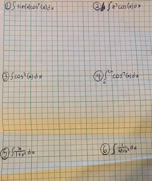 Solved (1) ∫sin(x)cos7(x)dx (2) ∫πx3cos(x)dx (3) ∫cos2(x)dx | Chegg.com