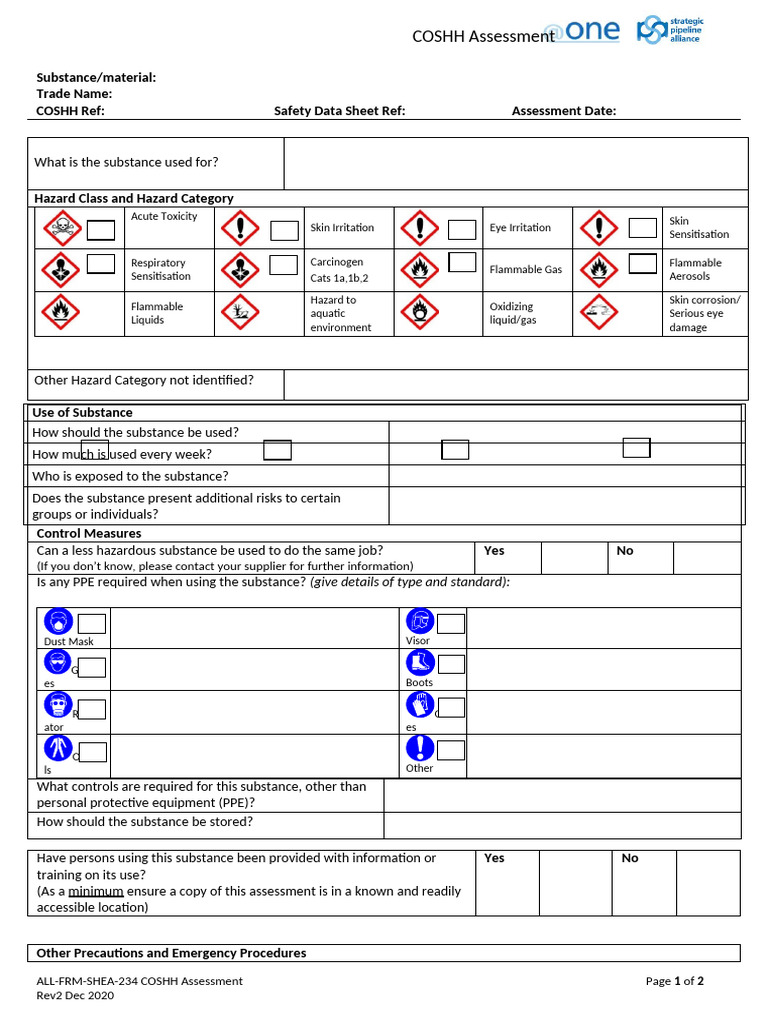 COSHH Assessment Form - Template | PDF