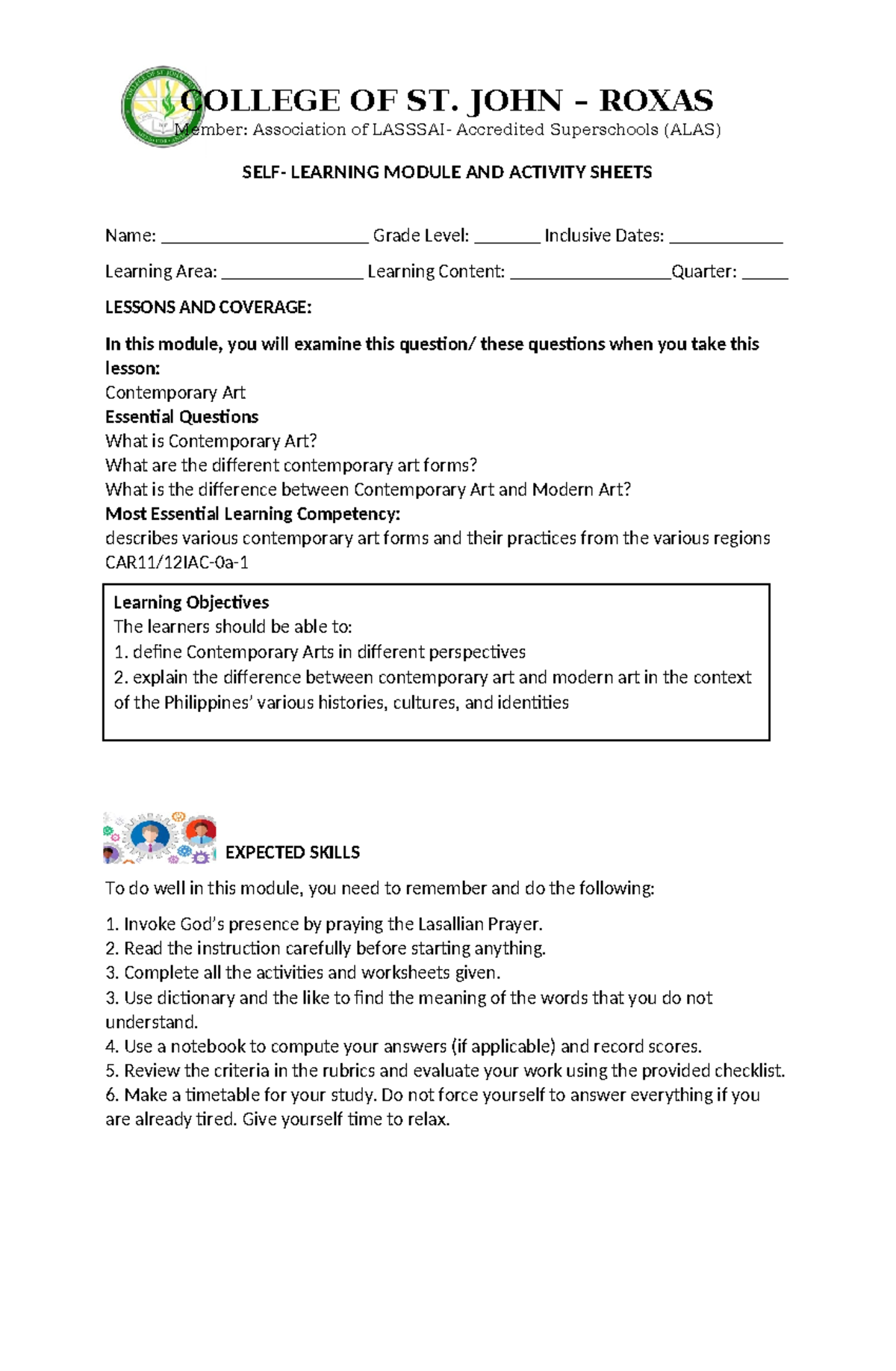 CPAR Module Q1 Week 1-edited - Learning Objectives The learners should ...