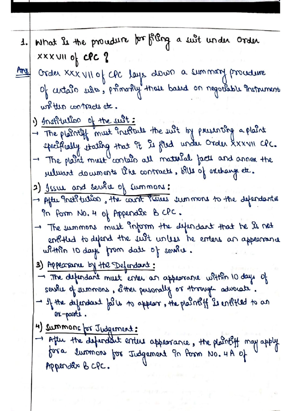 Summary Suit - Order XXXVII of CPC - 9310411779