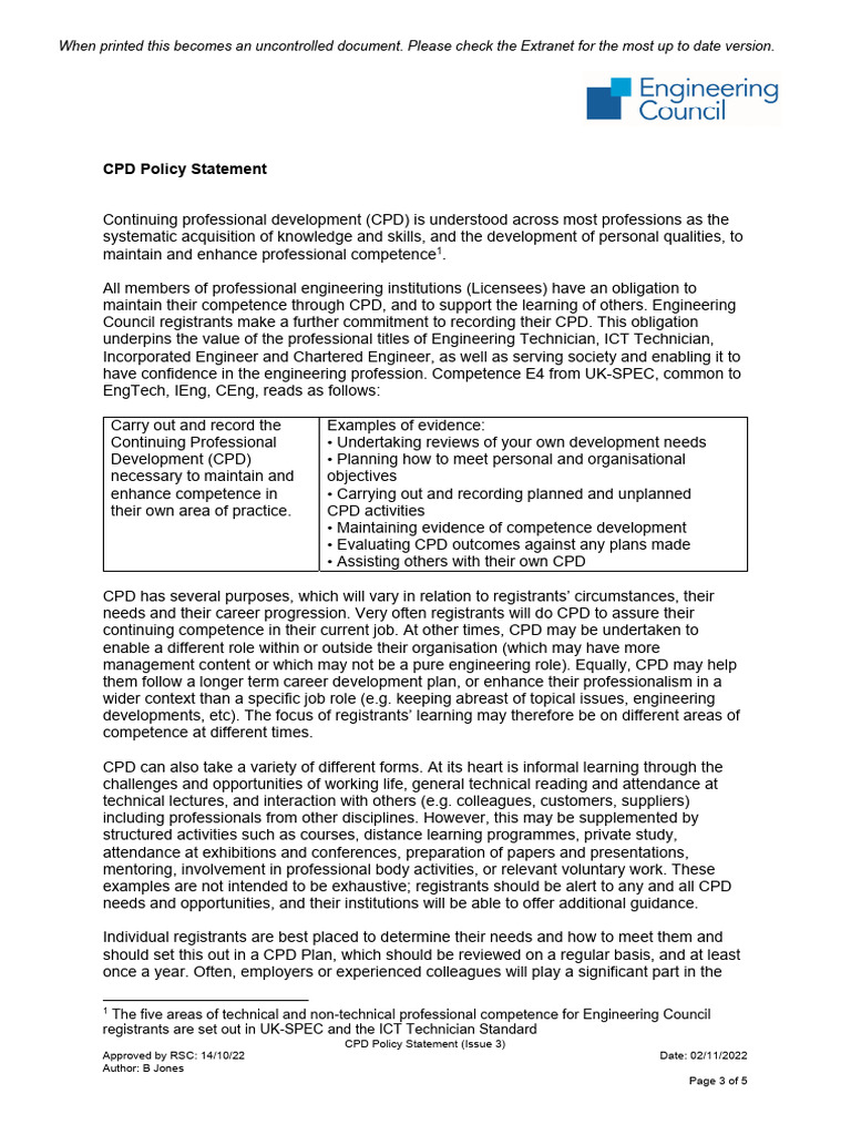 CPD Policy Statement Issue 3 | PDF | Professional Development | Mentorship