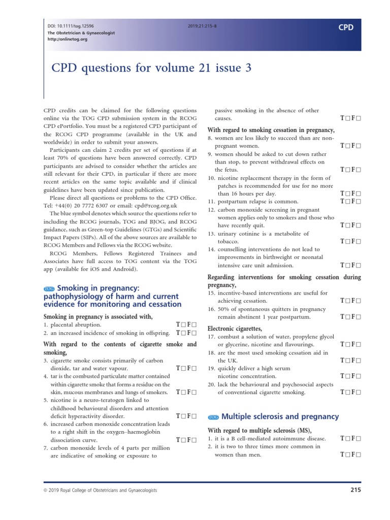 CPD Questions For Volume 25 Issue 2 | PDF | Pregnancy | Clinical Medicine